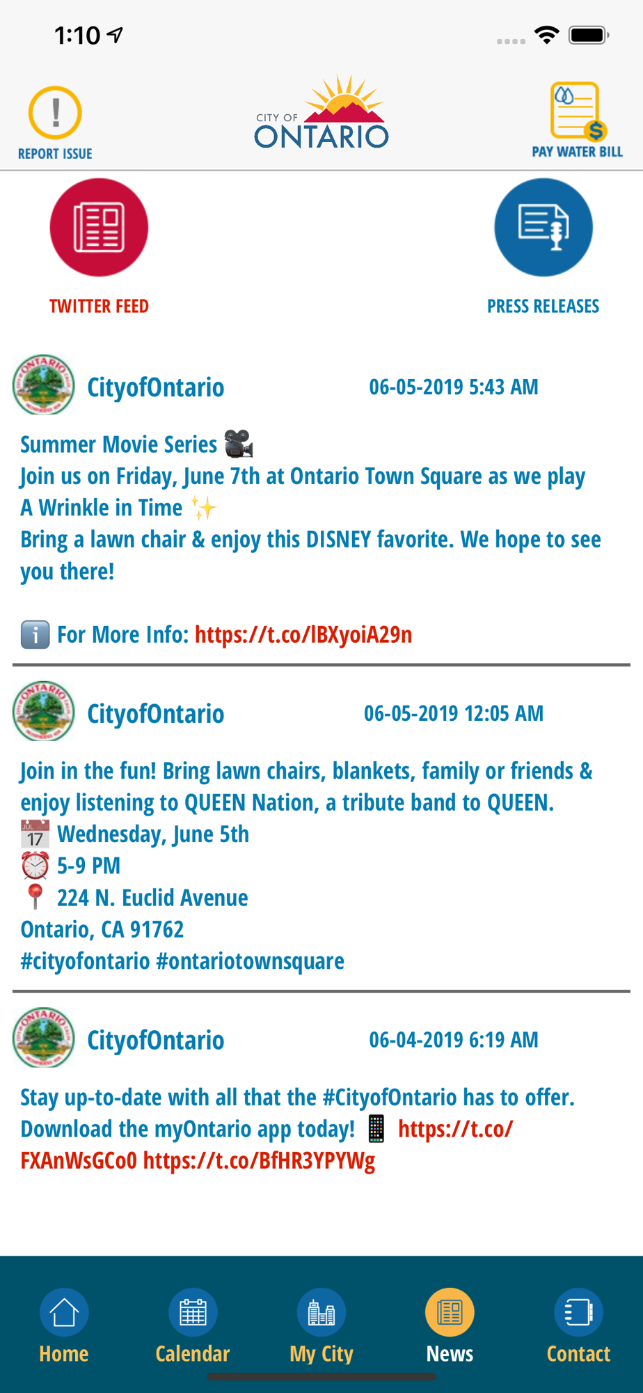 The myOntario app is designed to allow our residents, businesses, and visitors to stay up-to-date with all that Ontario has to offer. Our improved, easy-to-use app, will allow you to easily search for your favorite city park or facility, find your local library, explore upcoming events, and stay current with news and alerts.