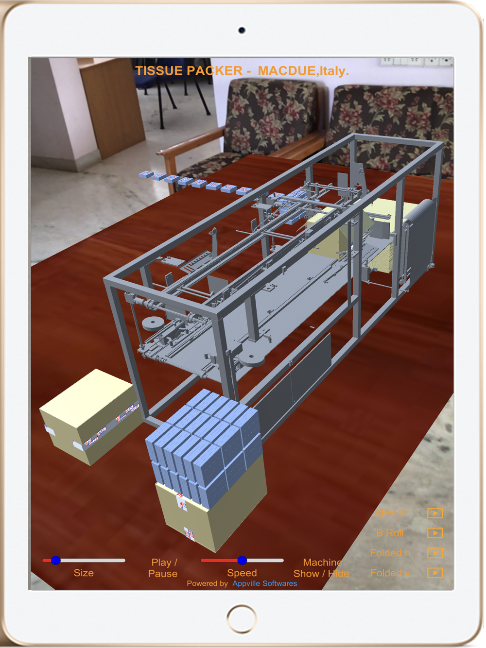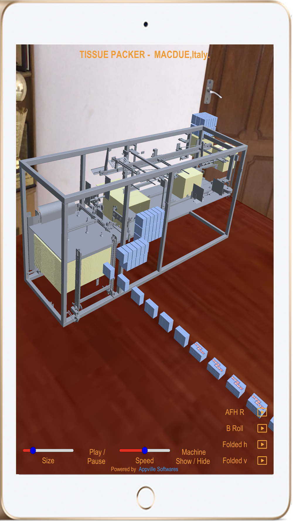 The app indicates the working of four types tissue packing machines