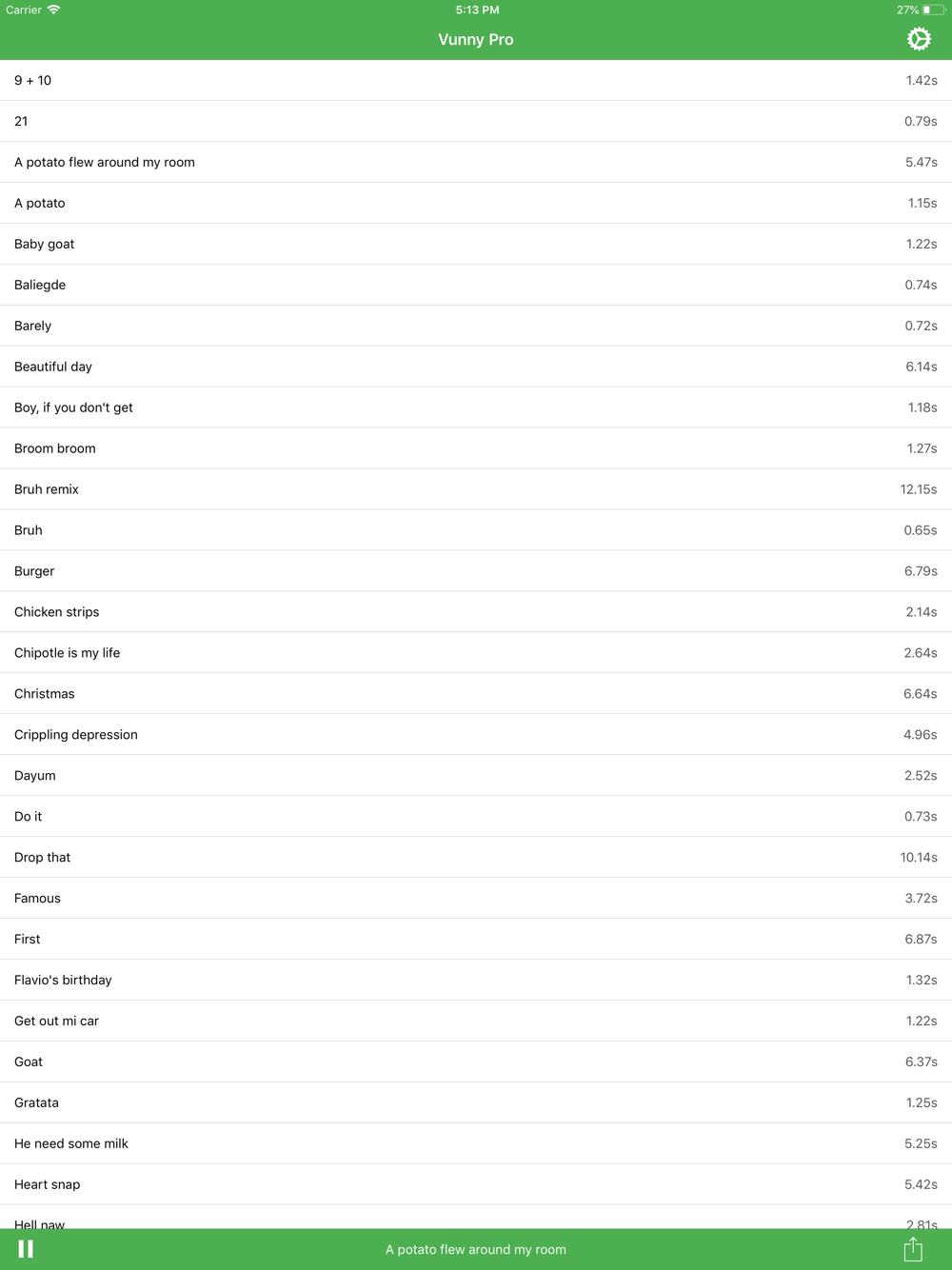 Over 90 of the funniest sounds, remastered for maximum quality and normalised volume. Press any sound within the list for instant hilarious playback. Relive the golden age the most famous Vine clips with this easy to use app. Share the popular Vine sounds with your friends and family using the built in share feature.