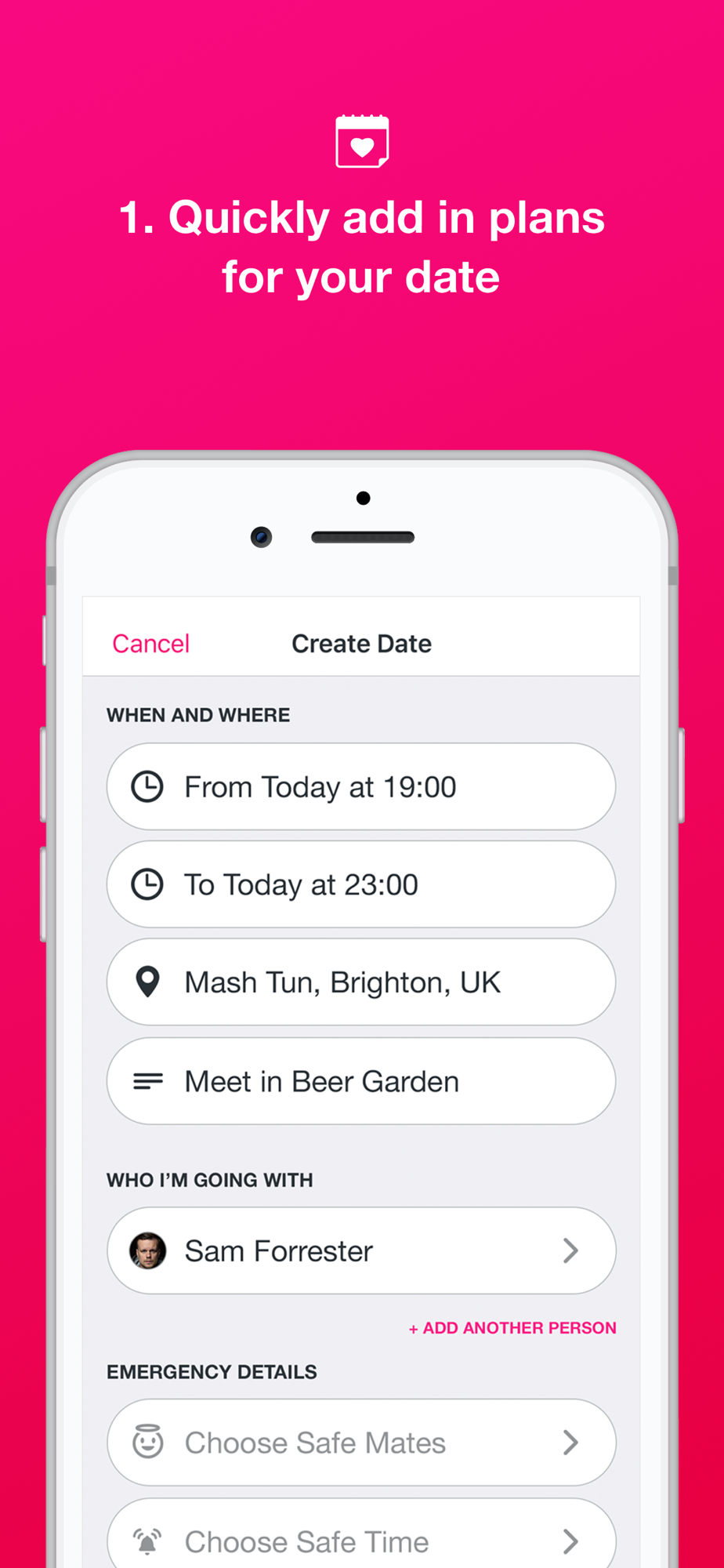 Dating is fun! But it’s important to stay safe so you can enjoy yourself when meeting new people. SafeDate is the ultimate app that offers peace of mind when dating. Go on dates knowing that your Safe Mates have got your back.