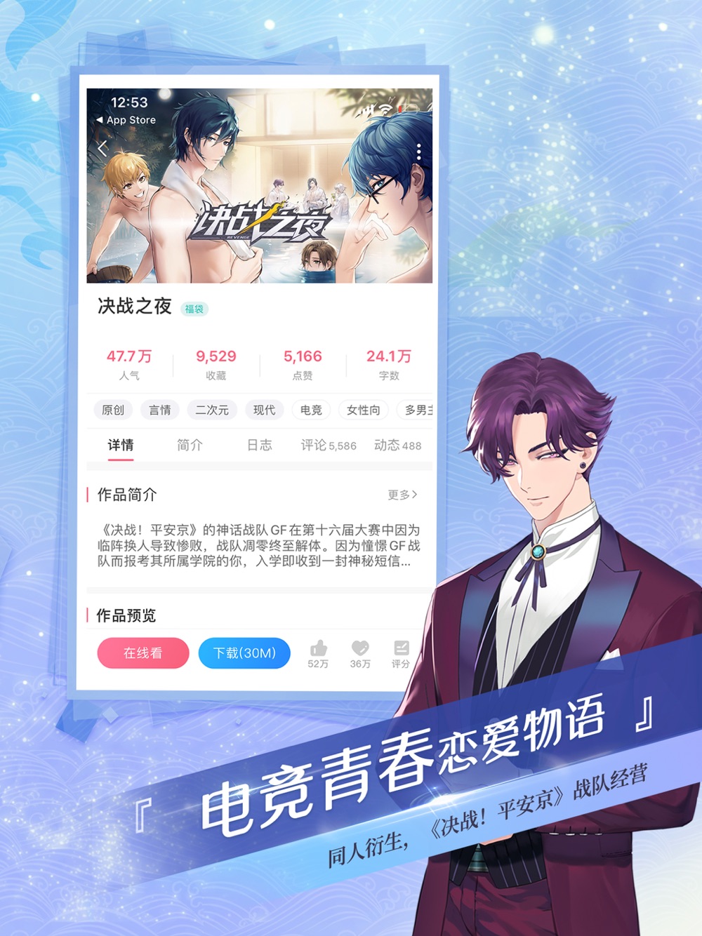 网罗众多顶尖制作人,画风精美,定制立绘,超高清背景。阅读过程可自主选择故事走向,获取最合你心意的专属结局。