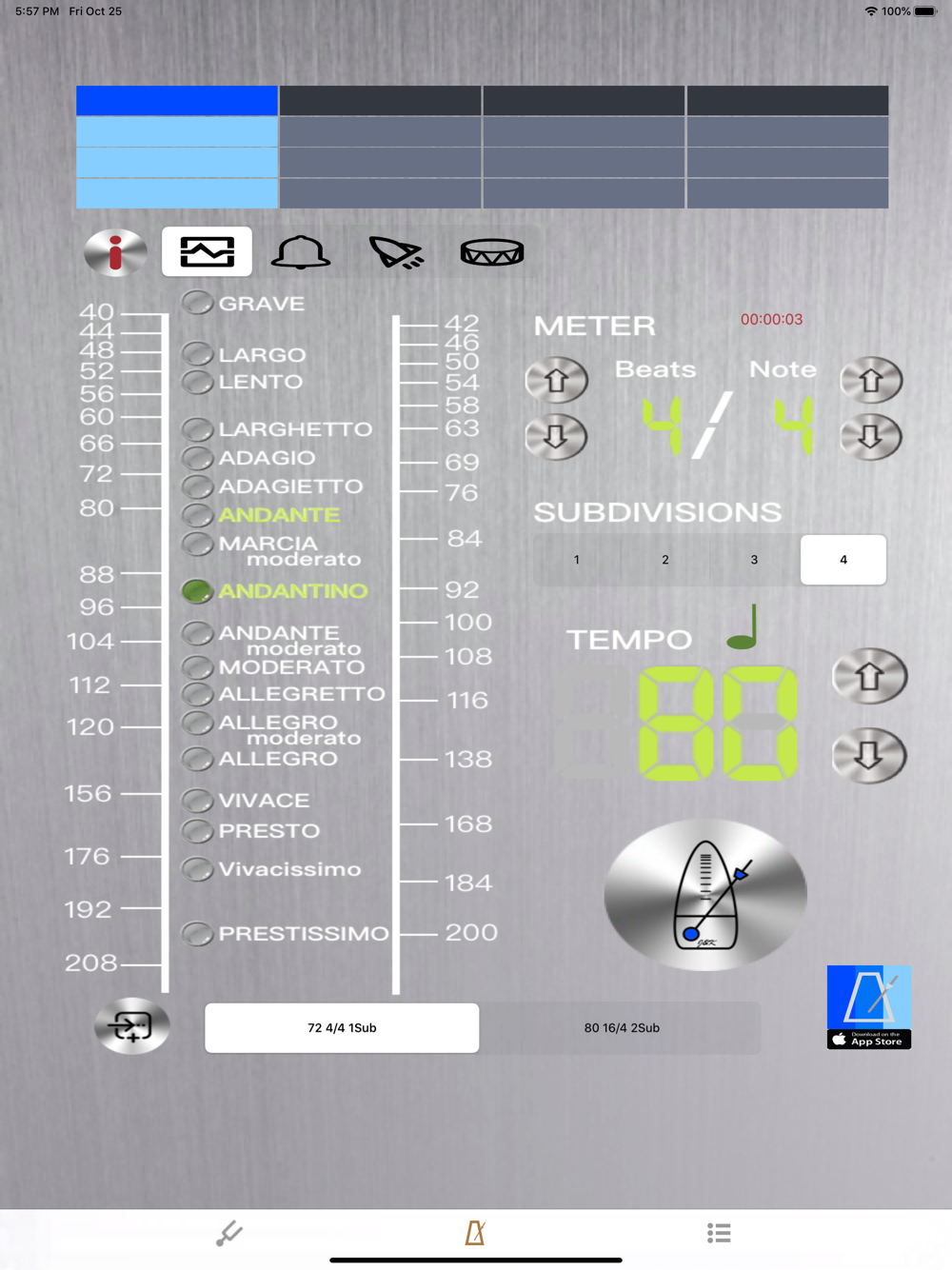 ▪ The scale for precision tuning is 10 cents for every sub-bit. The brown line represents the open strings start from. The green arrow means pitch is accurate and it will turn white once the pitch difference exceeds more than a sub-bit.