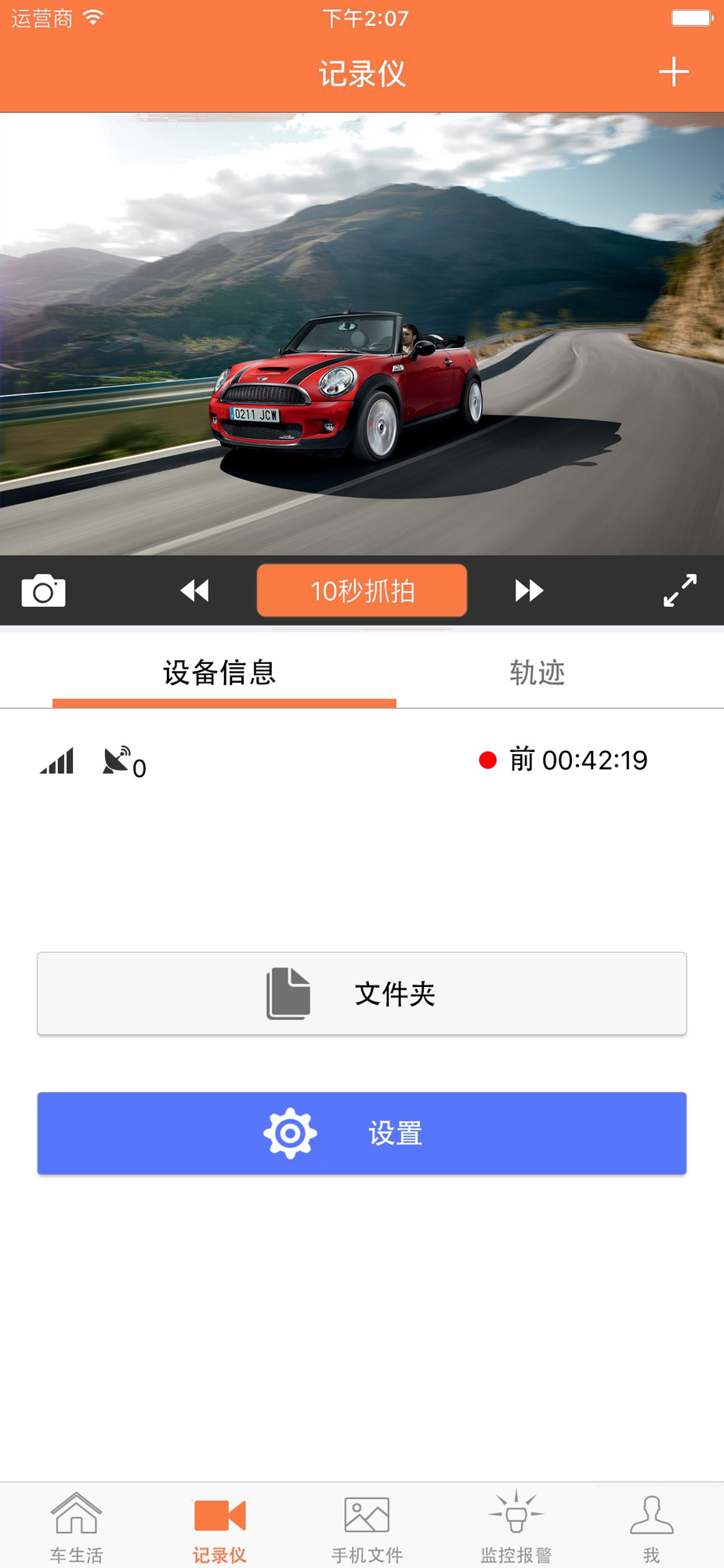 【记录仪】:通过WiFi连接设备后可进行设备的控制。例如调节背光和音量、发送语音指令、预览摄像头画面等。在预览界面也可以快进、快退、左右滑动回看录制的视频,同时也可将设备上的照片和视频下载到手机中。