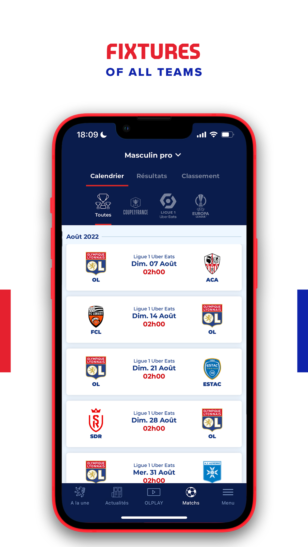 So you’re an Olympique Lyonnais fan? Then live out your passion for l’OL with the official OL app: OLPLAY. It’s the club’s very own live app, where you can watch l’OL matches on VOD and follow all the latest club news. You’ll never miss out on what’s going on at Olympique Lyonnais again.