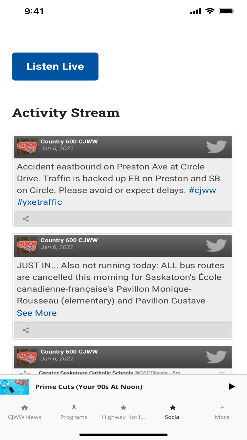 Connect with Country 600 CJWW for local news, sports, weather and the legendary country of the 90's and more. Up to date information that matters to you and the latest on upcoming concerts and contests on Country 600 CJWW all in one handy app.