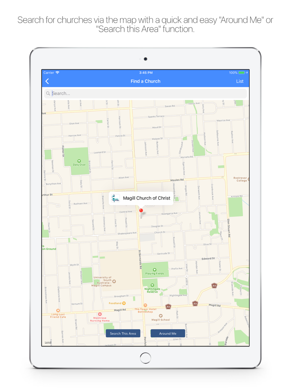Church Central is a central resource where you can search to find churches by name, ministry, suburb or by map with the quick and easy ‘Around Me’ or ‘Search this Area’ function.