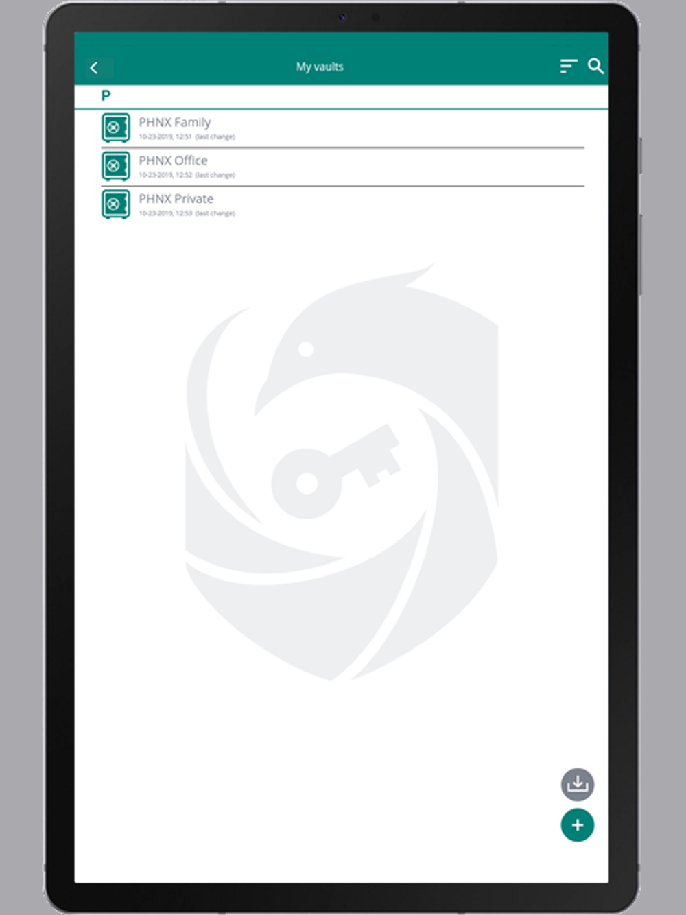 Like a vault, PHNX is only accessible with a special key - the master password. You can reset it, if necessary, using a pre-selectable combination of several “spare keys”. Only PHNX does that.