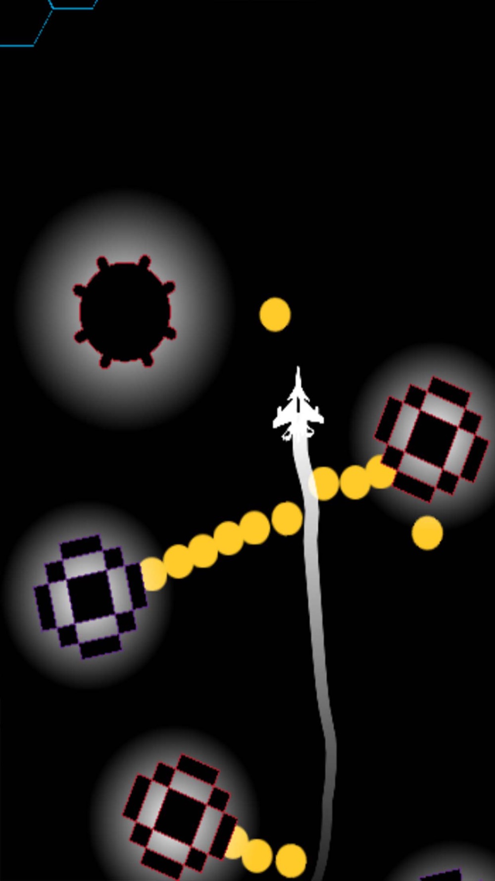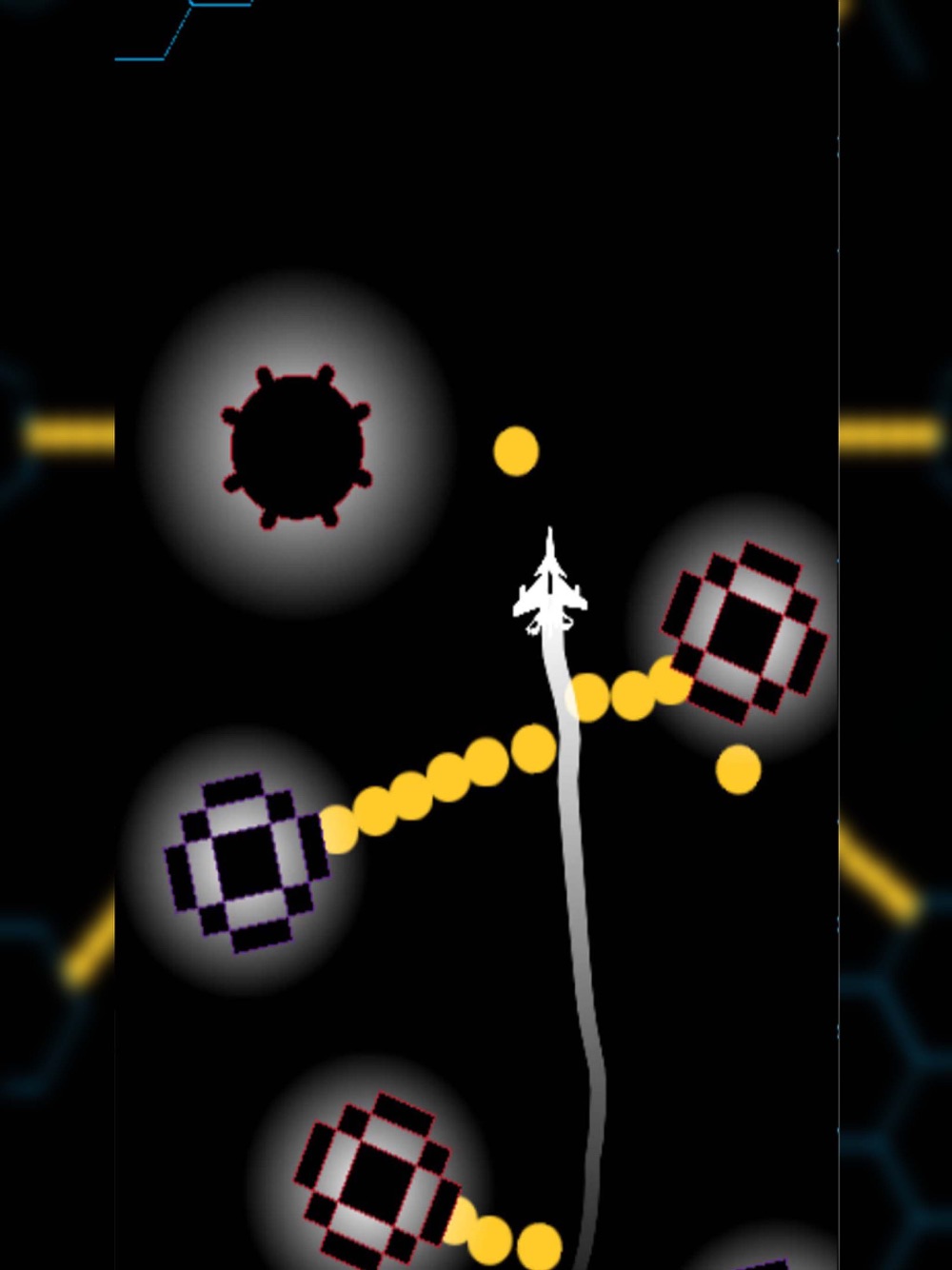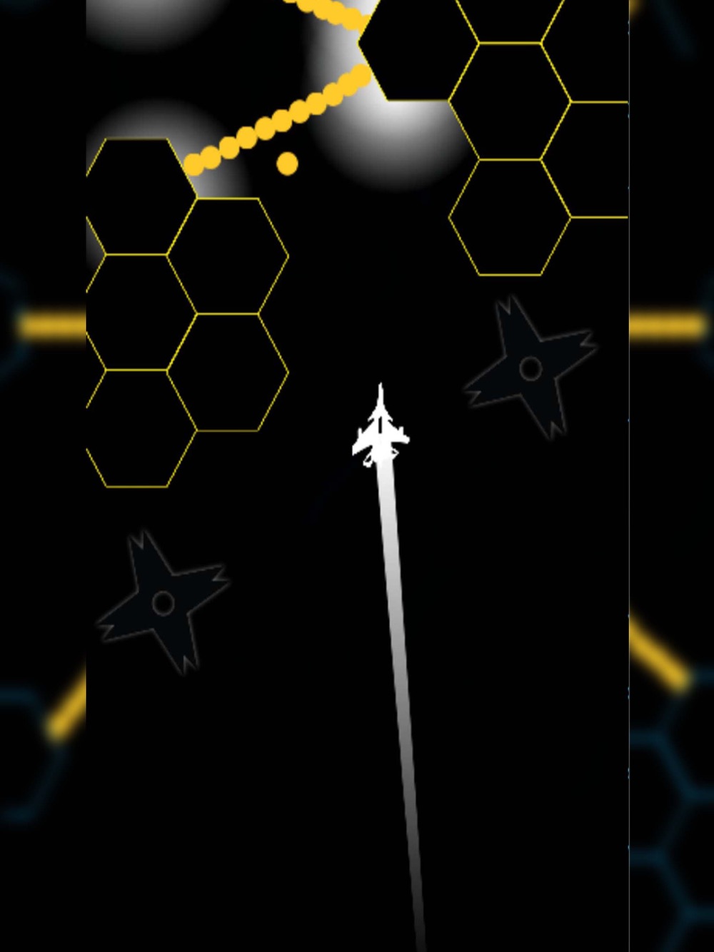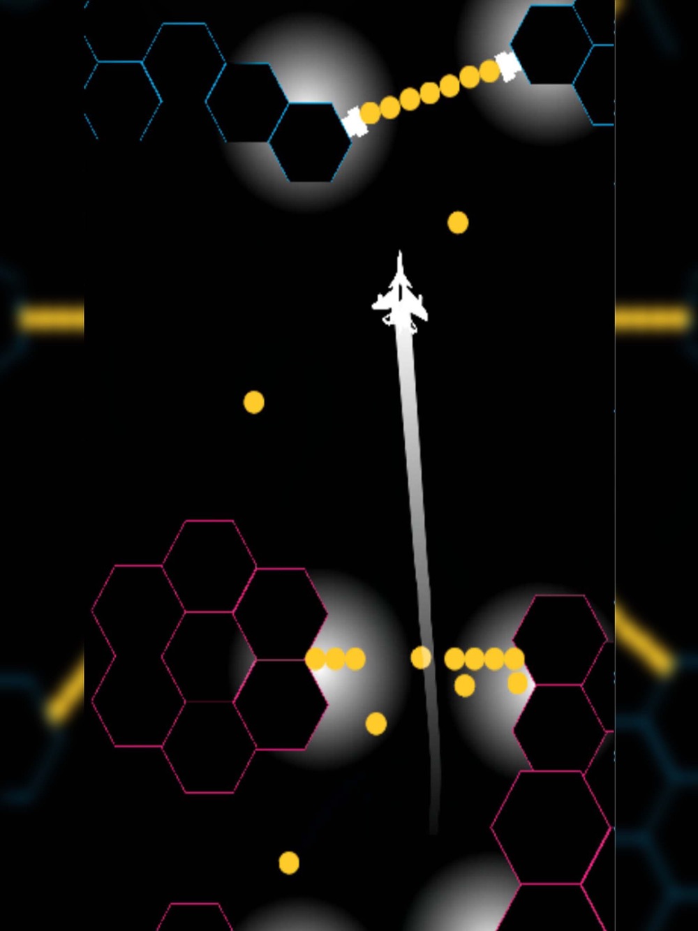 You must fly behind enemy lines. Dodge left and right to avoid the hexagonal reinforcements, moving balls and the enemy Hexa and other rotating Obstacles
