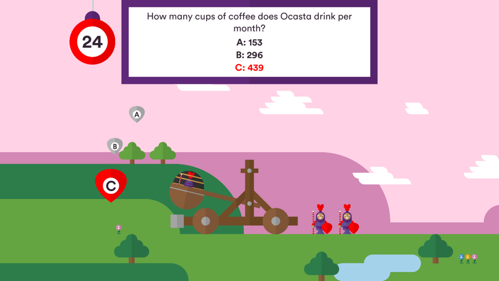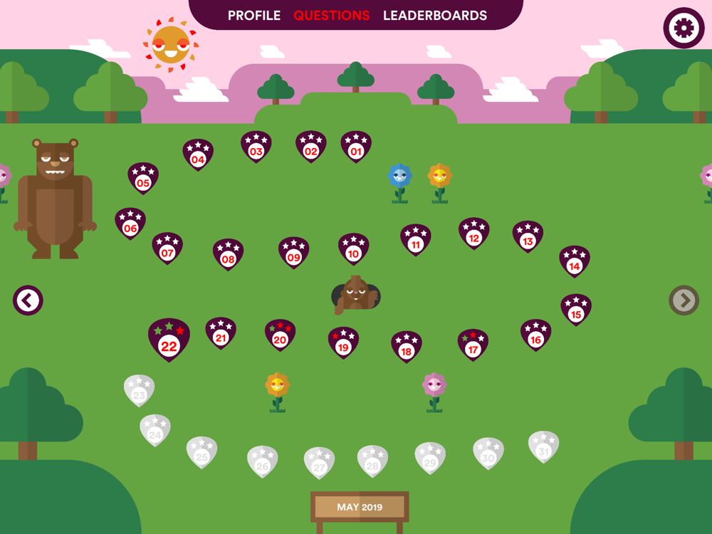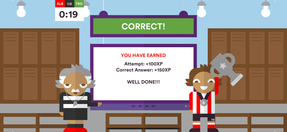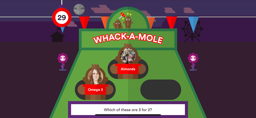 Albert is the hero of our e-learning app. He has multiple games for staff to play including: whack-a-mole, catapult castle quiz, Albert’s lab, and his own quiz show – buzz. There are three daily challenges for staff to complete. They receive experience points (XP) every time they play and boost their score by answering correctly. The leaderboard shows who knows their stuff.