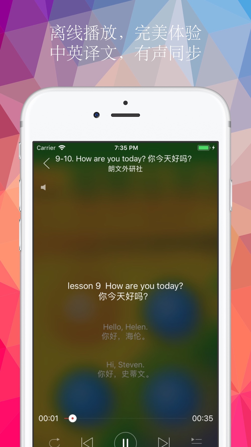 本应用整合了最新新概念英语全四册,是英语会话听力必备材料,一边听原汁原味的英语朗读,一边看同步显示的课文,。本应用绝对是您提高听、说、写的最佳途径。