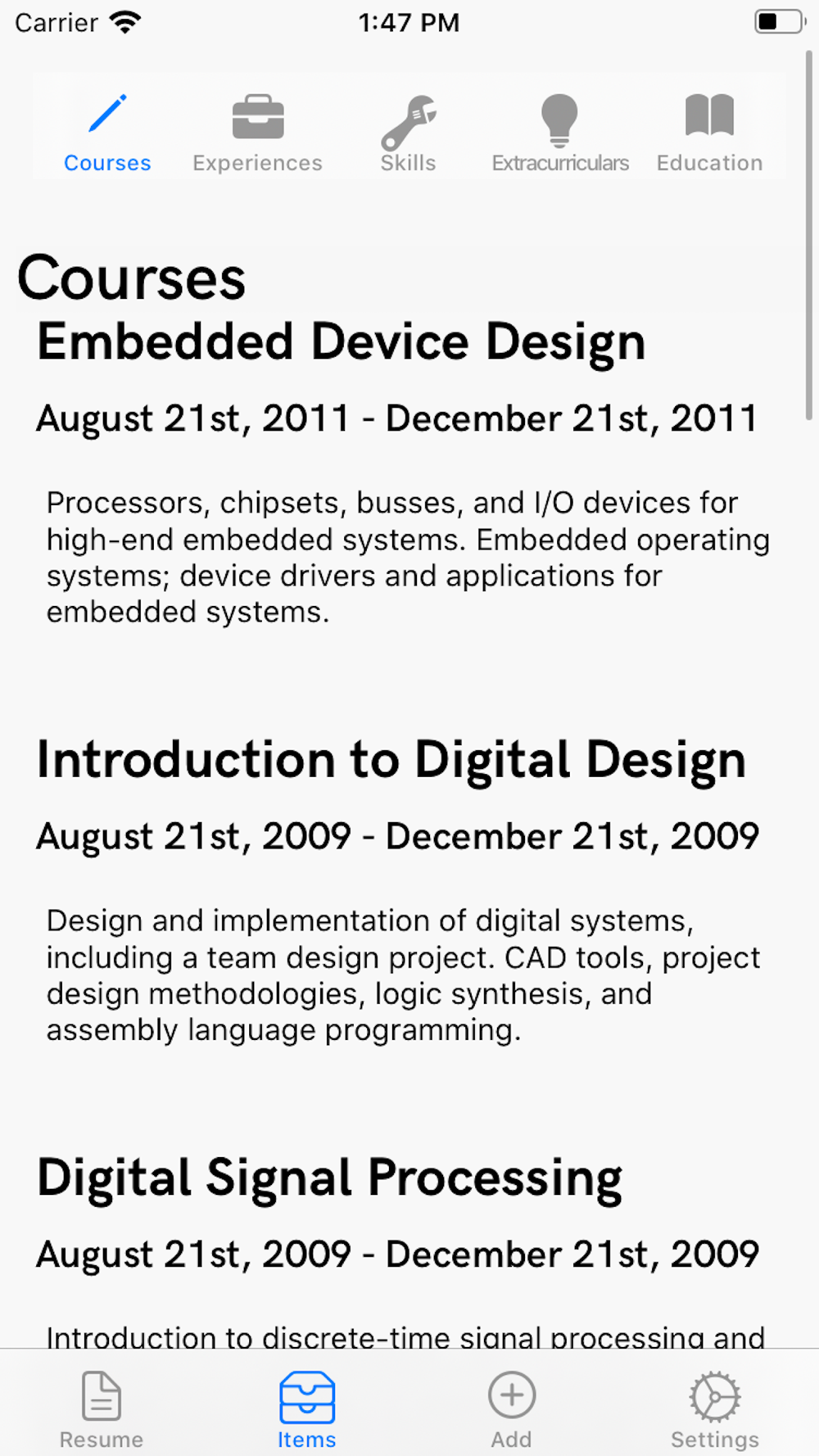 With multiple resume styles to choose from, you can craft a beautiful resume in just a couple of minutes from your iPhone or iPad!!