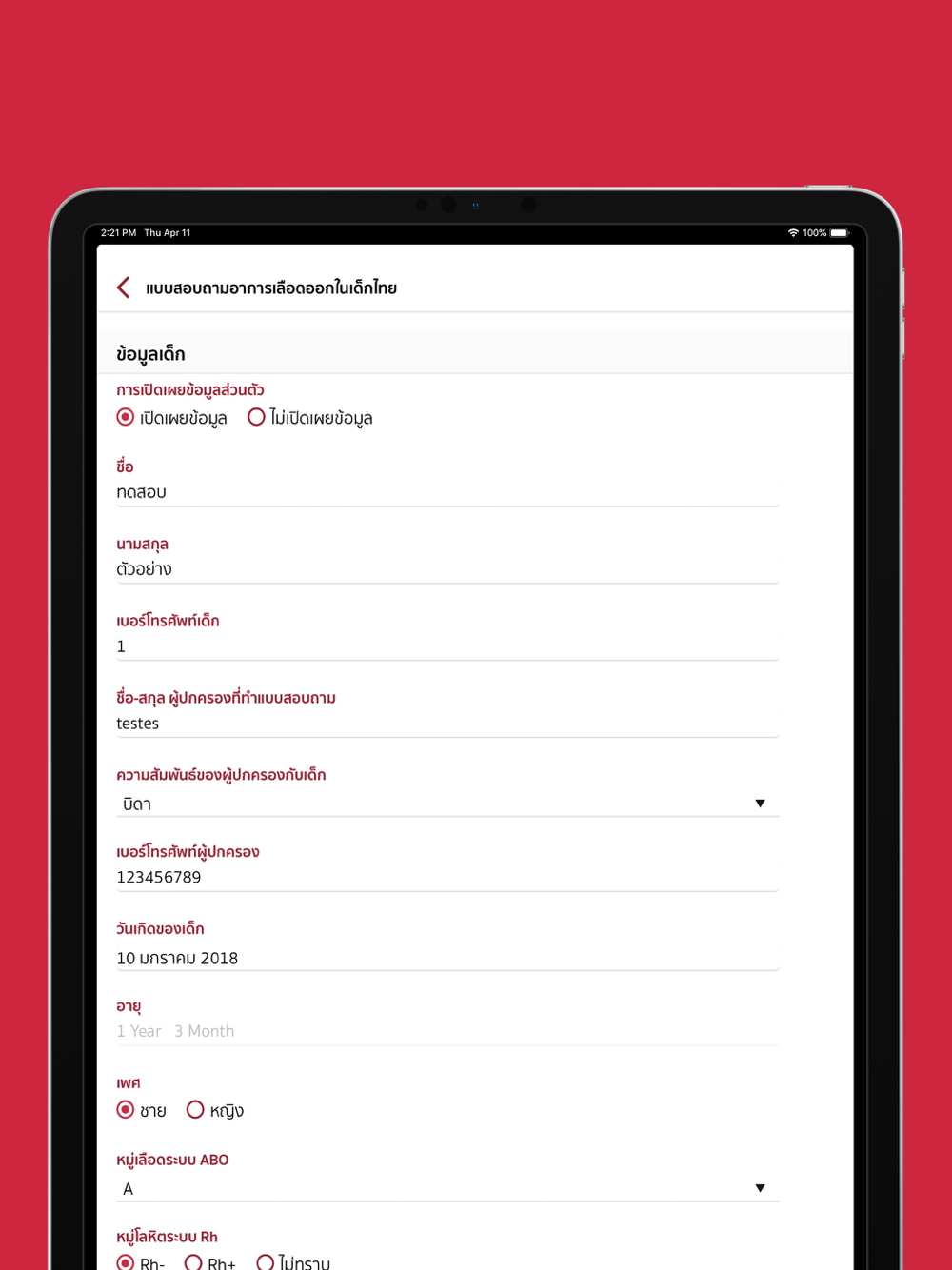 ทำให้การสำรวจอาการเลือดออกในเด็กไทย (Thai Pediatric Bleeding Questionnaire)