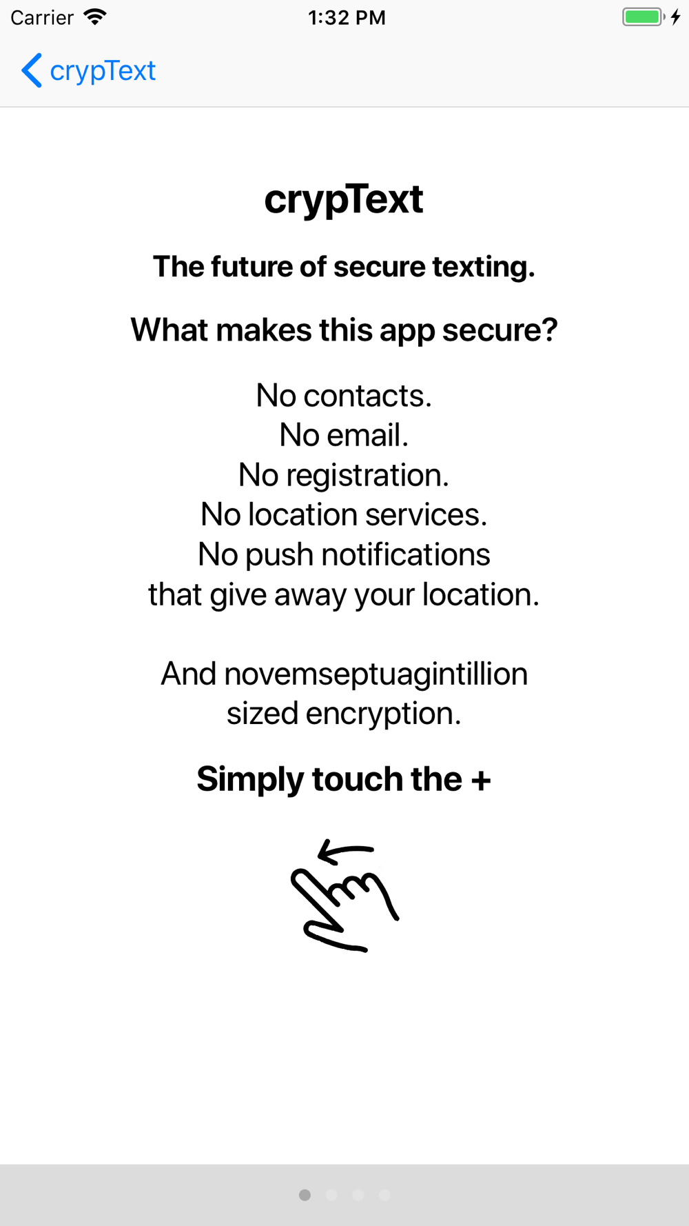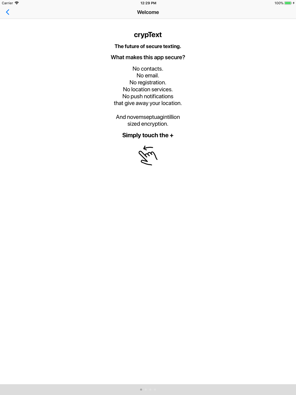 Unlike other secure texting apps, no "authentication" is required for full user functionality on crypText.