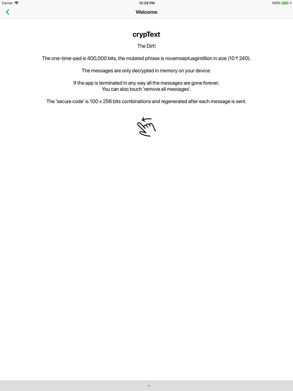 Unlike any other texting app on the market today, crypText provides the greatest level of secrecy obtainable when exchanging text messages with anyone!