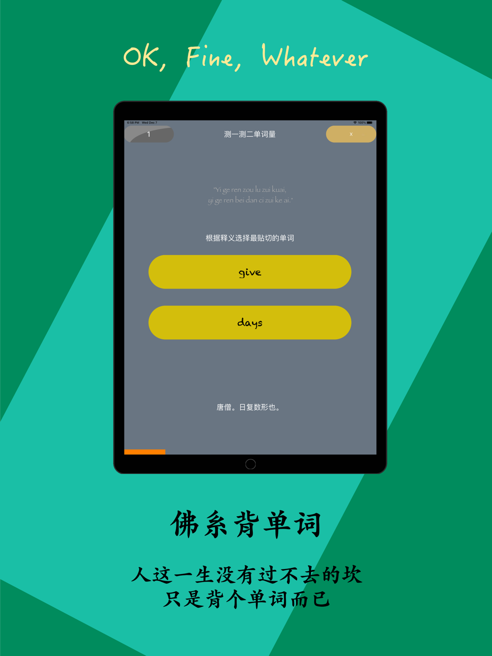 于是乎,佛系背单词横空出世,让那个优柔寡断摇摆不定容易放弃的你,从此之后拥有在不经意间随缘随性学习英文单词的绝佳机缘。