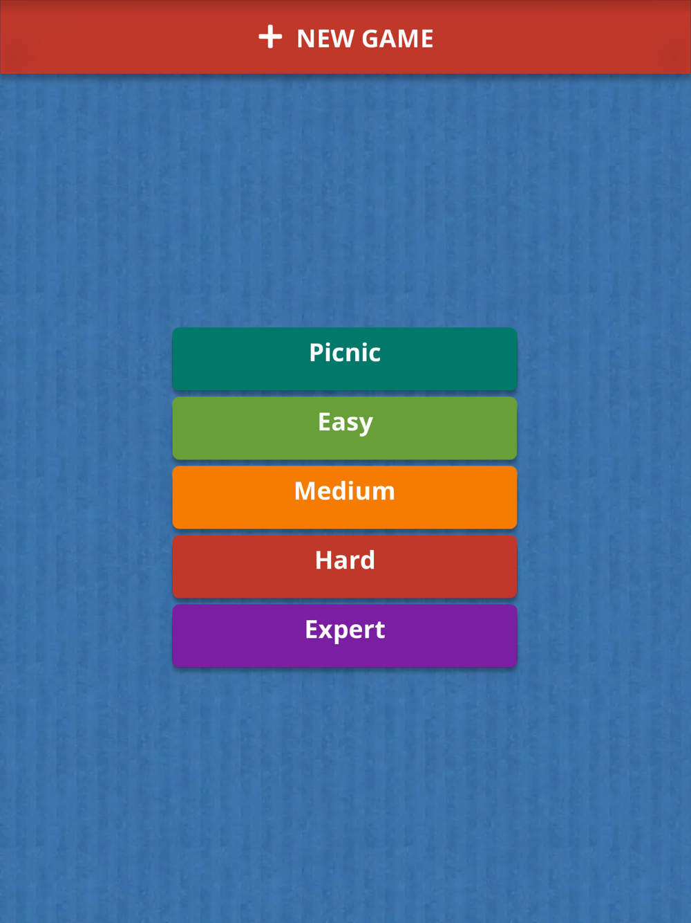 > Picnic, Easy, Medium, Hard, Expert(Insane)