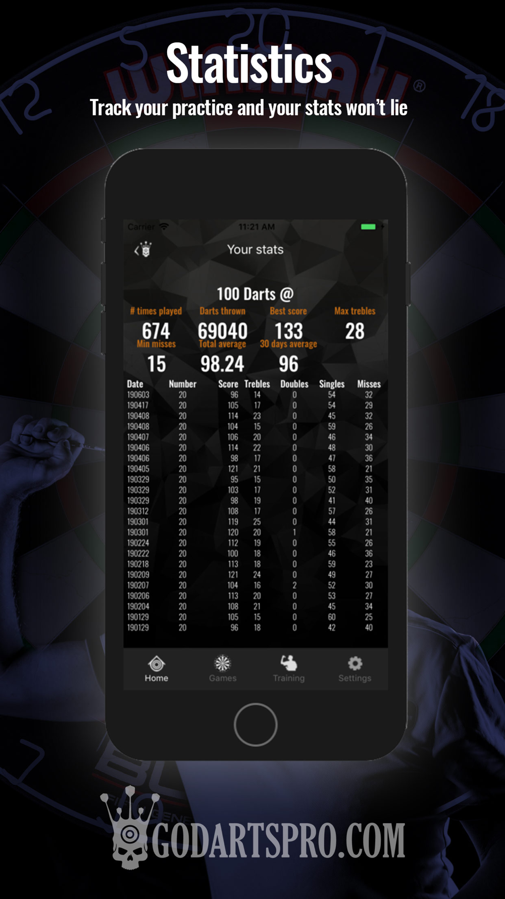 GoDartPro offers a vast amount of tools for getting your darts better. This app contains several easy-to-use darts games to make your training easy and challenging. More games will be added continuously.