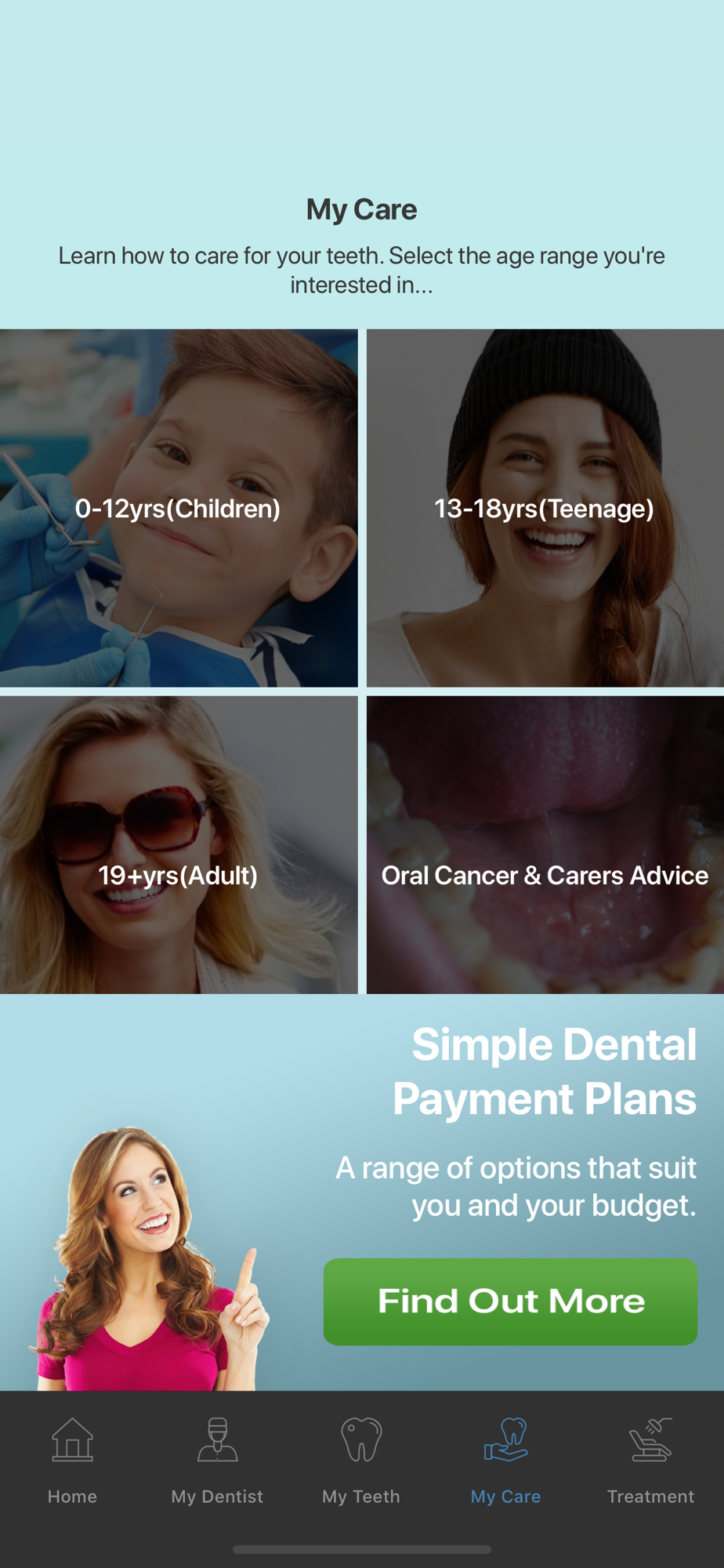 It gives details of hygiene and dental therapy options