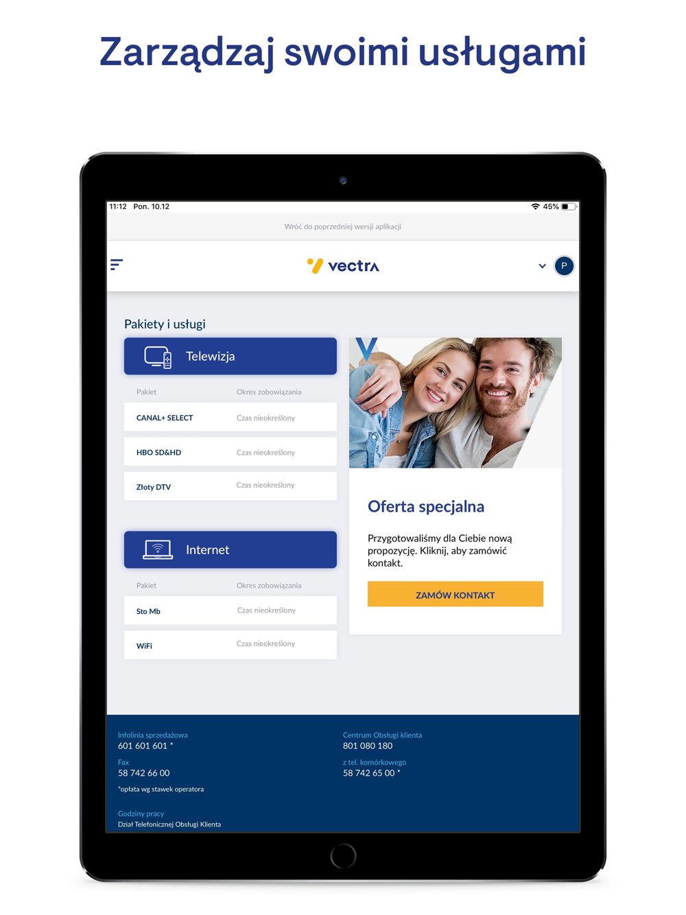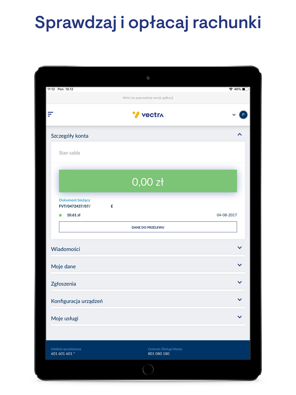 Strefa Klienta dla Abonentów Vectry to bezpłatna aplikacja, w której znajdziesz wszystkie najważniejsze informacje dotyczące Twojej umowy.