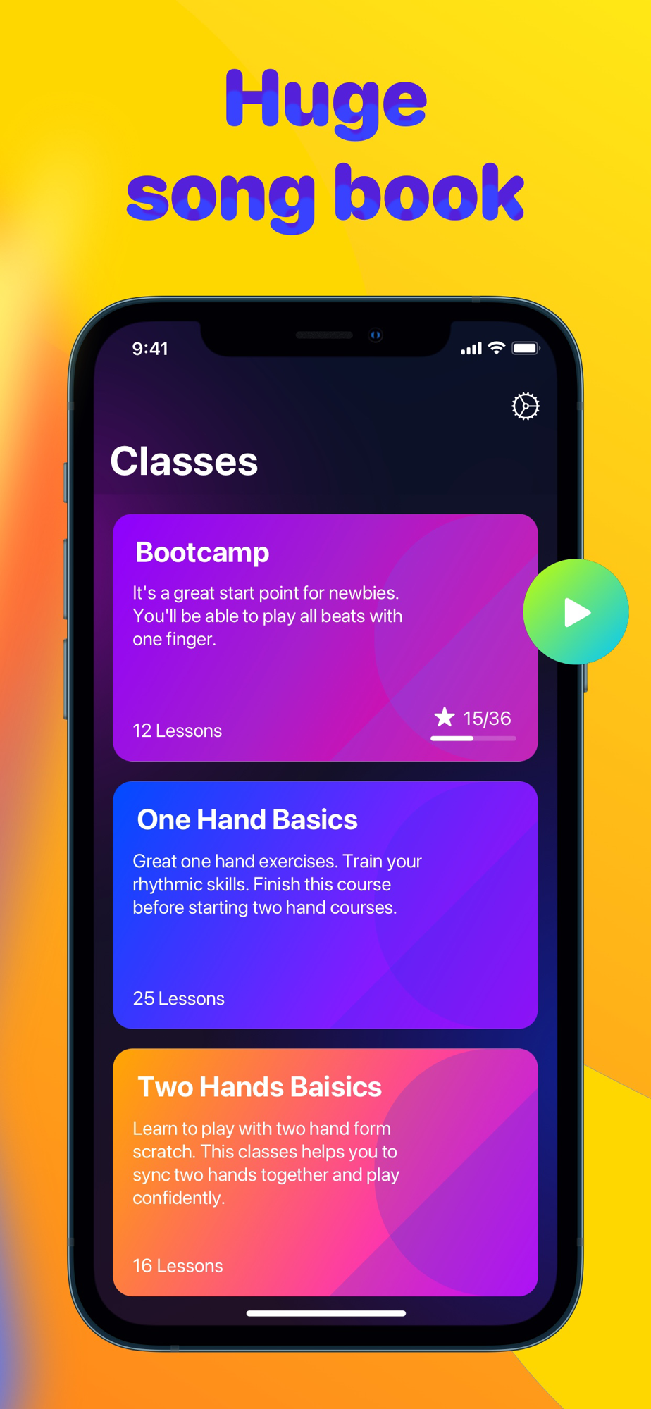 * Guided playing: Rhythms help you play different parts of a track and then you can combine them together. The app will lead you to advance your skills and challenge yourself.