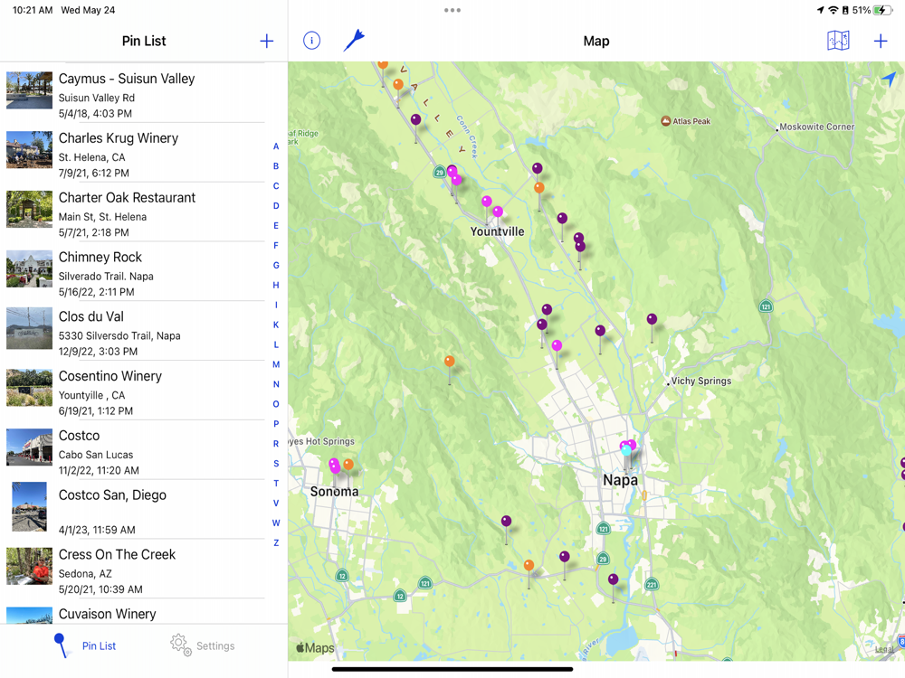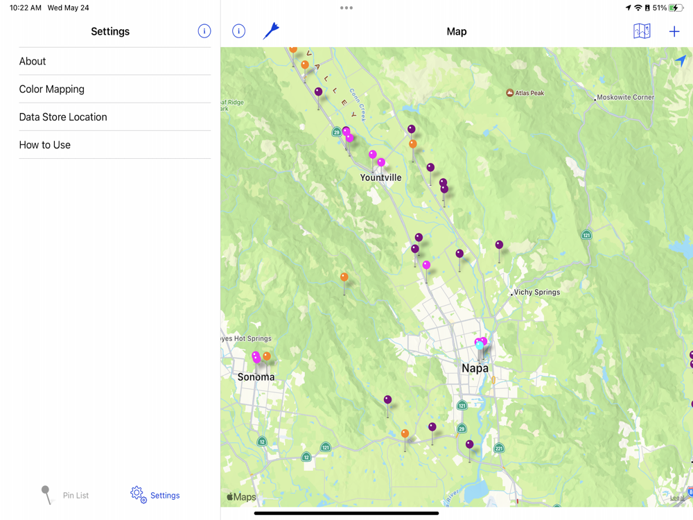 This app is a great tool for folks moving into or visiting a new area. As you explore and find places you like, you can remember where they are by dropping a pin on the map then add a description and photo. Whether it be a great bar, restaurant or winery, you will always be able to remember what it looked like and get directions back there.