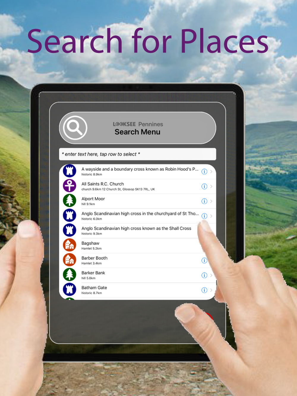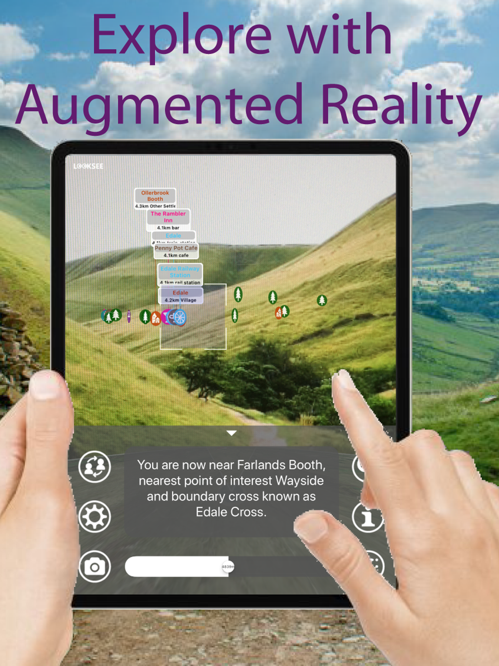 Looksee AR for the Pennines, England, is an Augmented Reality (AR) viewer used to find places of interest directly on your phone camera's screen and add fun, knowledge and interest to your adventures and tours.