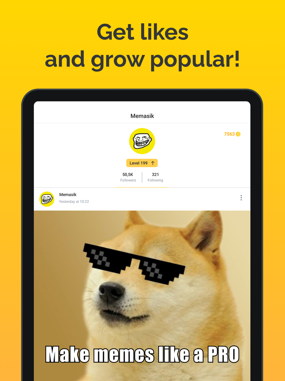 - Moreover, you can boost your posts in the TOP using meme coins (the app’s internal currency), which you can earn, being a true meme maker