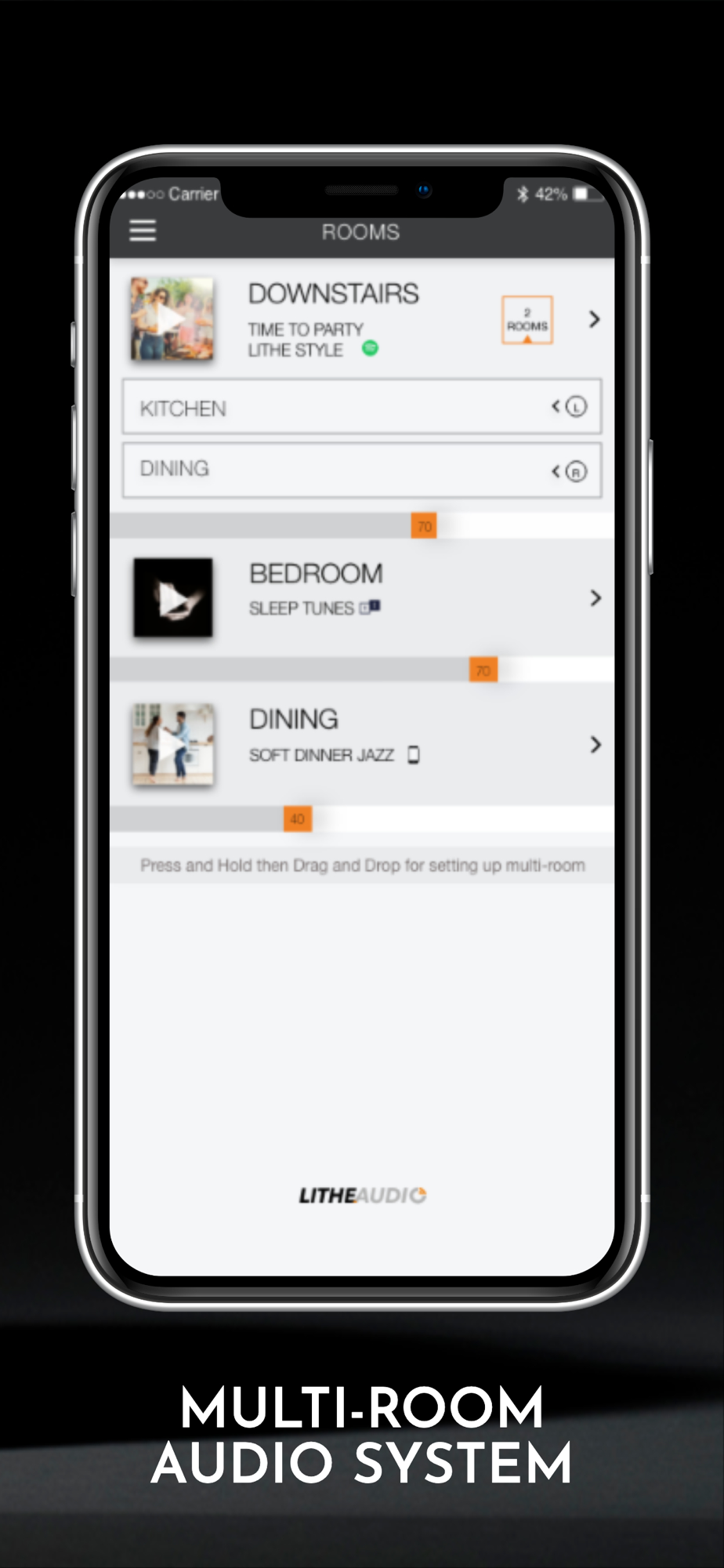 Lithe Audio Multi room app brings your Lithe Audio Wireless Speakers to life, easily setup your speakers via Apple Airplay, manage and play your music seamlessly, throughout your home.