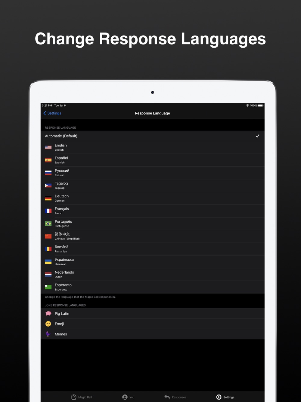 Magic Ball can respond in 12 different languages. Now everyone can get a response.