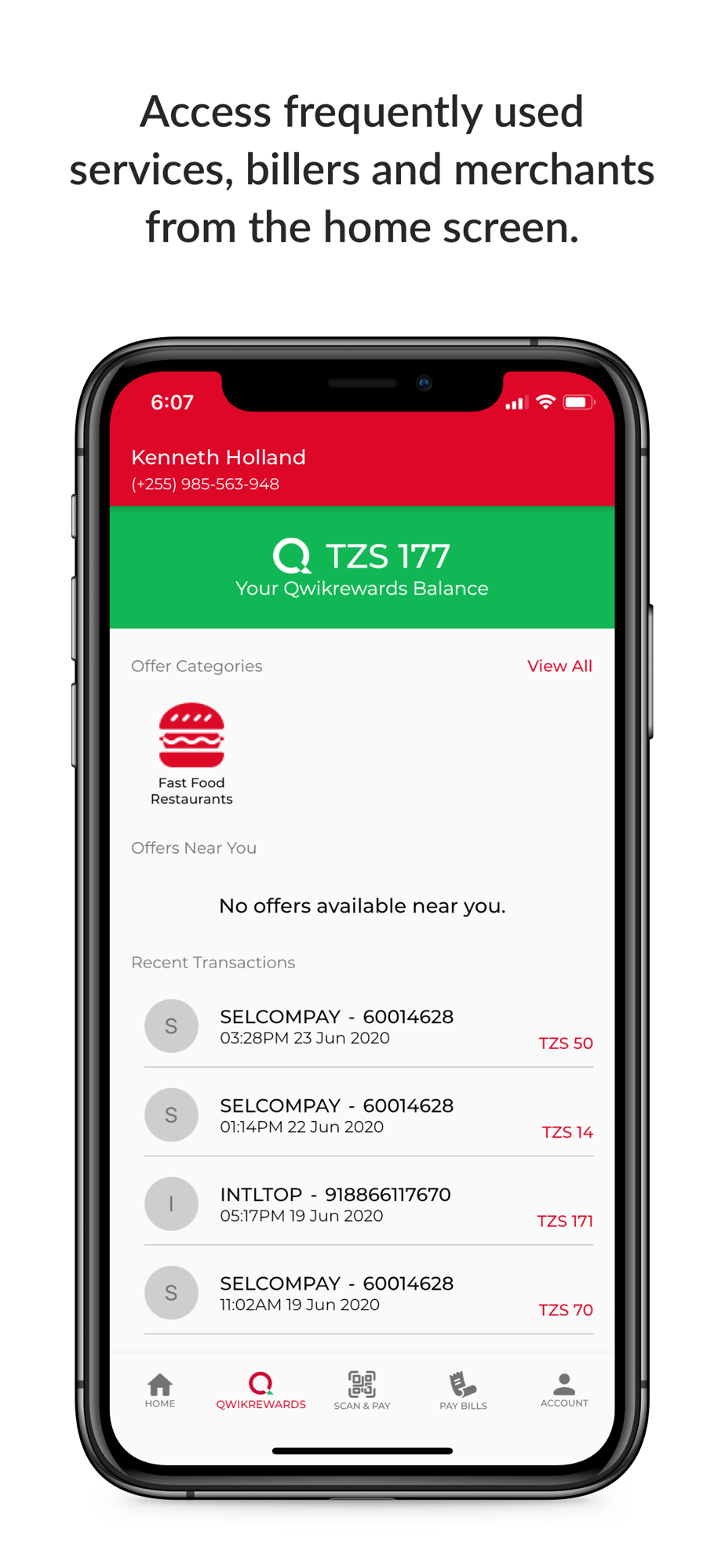 Buy local and international airtime, pay your Internet and television subscriptions, Government dues, fees and fines