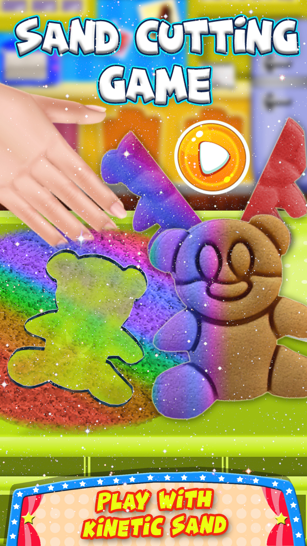 Enjoy this amazingly satisfying slime sand cutting game with brain melting ASMR cutting sounds that will melt your brain while you play every bit of it. Enjoy crunchy sand cutting sounds while you cut the magic sand clay with knife. First of all make your favorite shape with the slime sand mold and then enjoy This amazing sand smooshing, pressing and crunchy cutting with ASMR brain melting sounds. You can also enjoy sand scooping with the sand slime using an ice cream scope and cutting using a cheese slicer. This oddly satisfying game will make you play it all day long. Why not relax with this fun to play sand slime game and melt your brain.