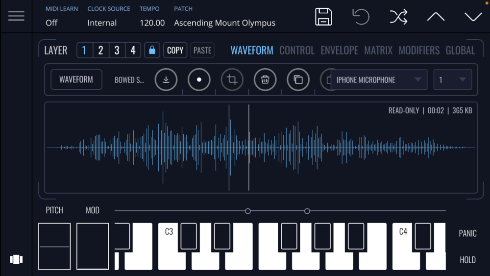 Start with FRMS built-in library of samples, load your own, or even granulate live audio. Stack up to 4 layers of synthesis, with independent envelopes and modulation to create unique sounds with movement.