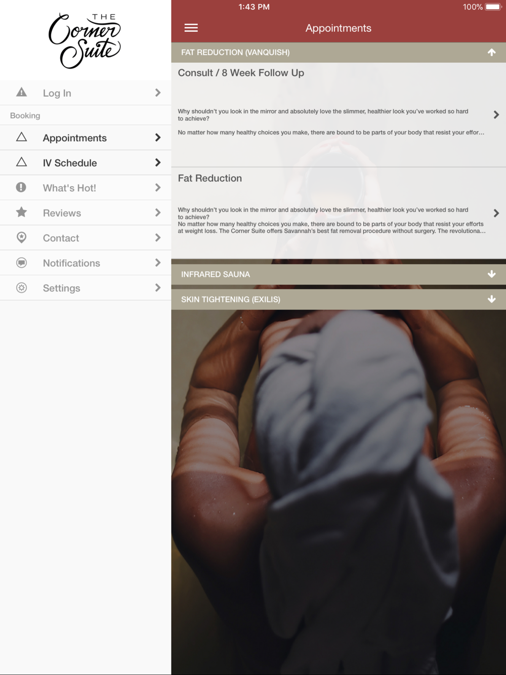 The Corner Suite is a private medical spa serving historic Savannah, Georgia. Our goal is to provide expert care in a calm, comfortable setting, and a reliably exquisite spa experience—every single time. From our mobile app you can book, schedule, view ongoing promotions, and access everything it takes to make wellness a way of life. We offer iv infusion therapy, infrared sauna, custom weight loss, and body contouring treatments by BTL.