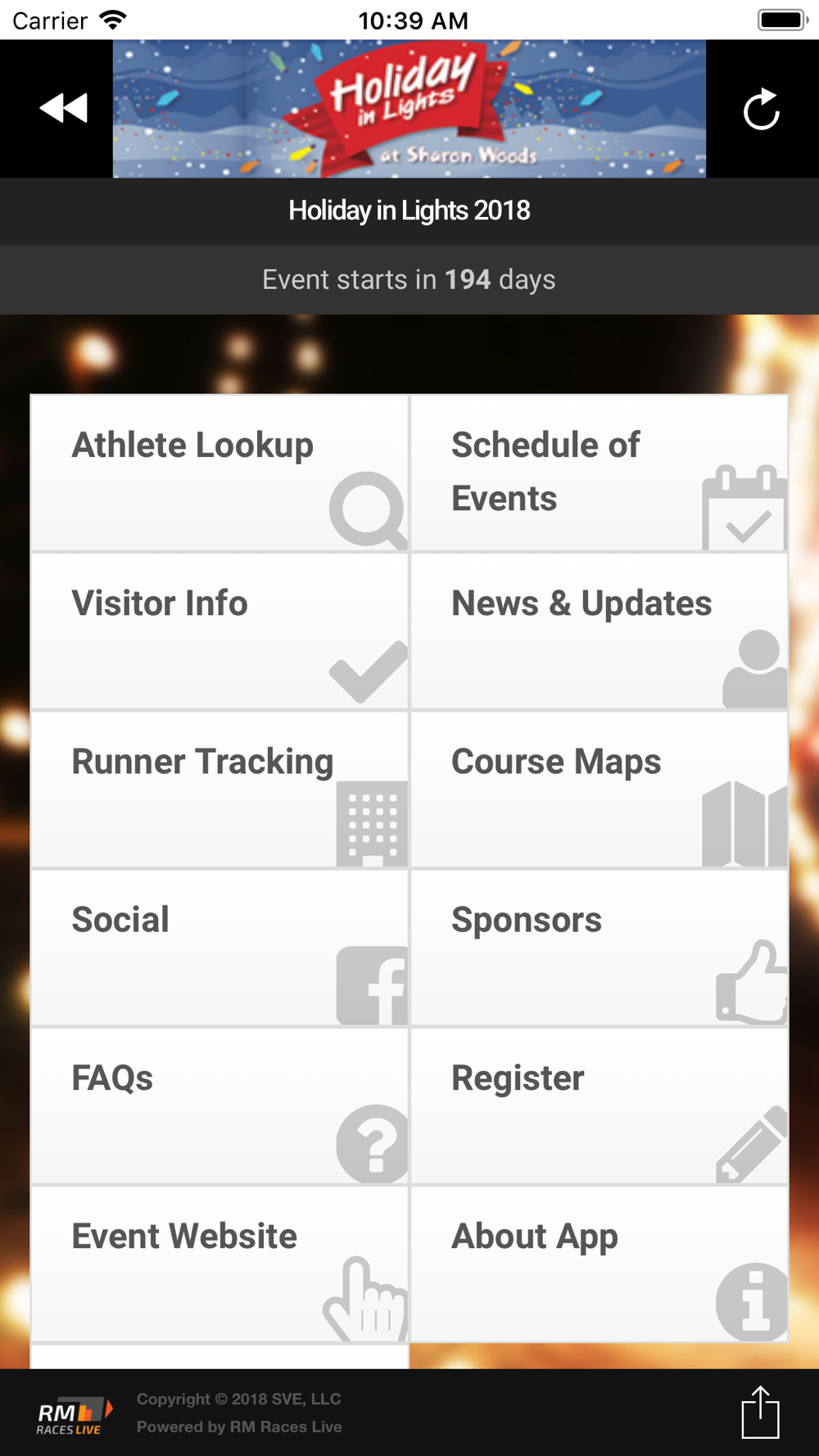 Holiday in Lights App. A helpful tool for event schedules and news, visitor guides, athlete tracking and results, registration, course maps and FAQs. Powered by RM Races Live.