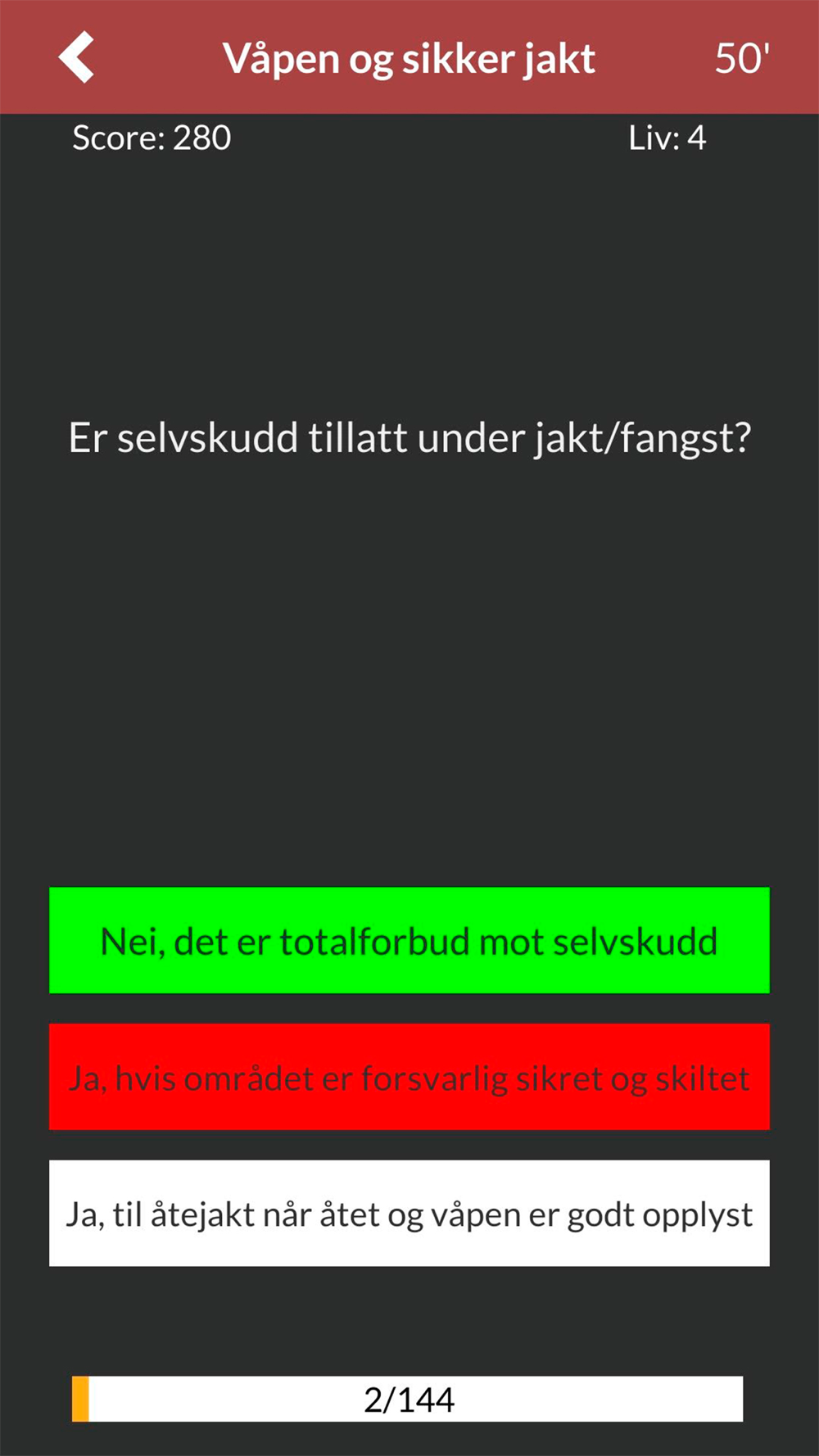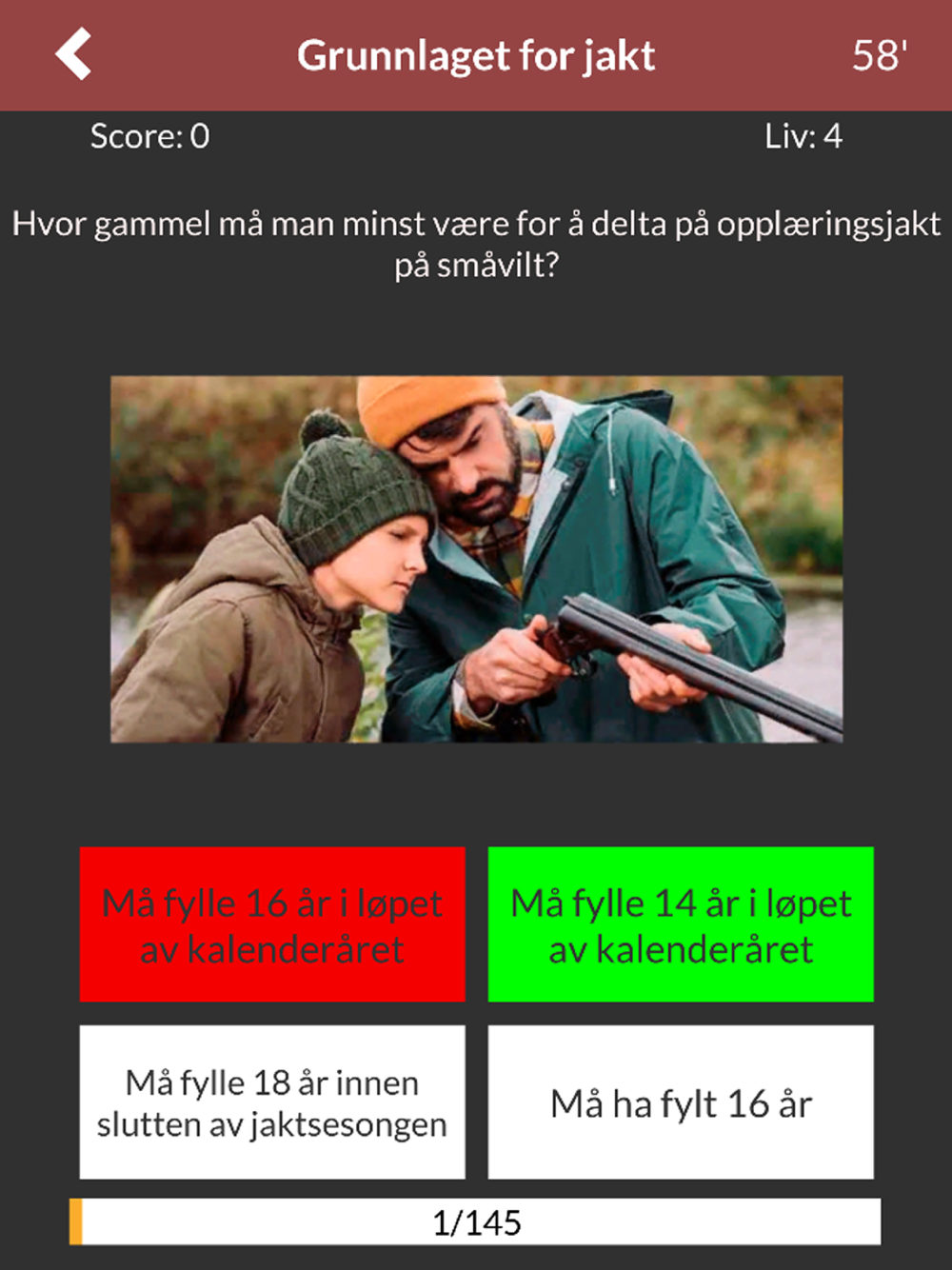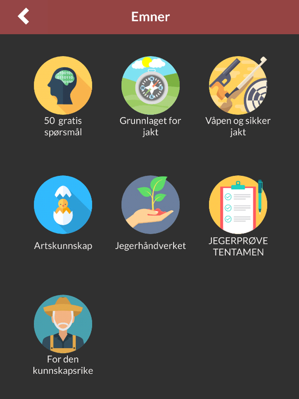 Sammen med vår samarbeidspartner Zyberchief.com har vi utarbeidet en app med mer enn 900 spørsmål fra pensum til jegerprøven. Spørsmålene er delt opp i de samme tema som stoffet gjennomgås under det obligatoriske jegerprøvekurset. Alle spørsmål er fra kjernepensum og relevante for jegerprøveeksamen. I tillegg har vi lagd en egen kategori; for den kunnskapsrike. Her kan du teste dine kunnskaper i spørsmål relevante for jegeren, men noe utenfor tema for den obligatoriske opplæringen.