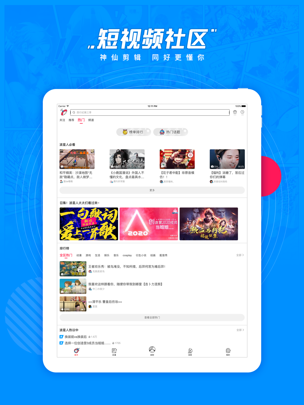 在这里,动漫、音乐、cos、游戏、同人……各种精彩短视频,一次性满足你的所有喜好!咻咻~和你同波段同爱好的小伙伴,一抓一大把!相见恨晚,分享吐槽想停都难,快来遇见你的“命中注定”!
