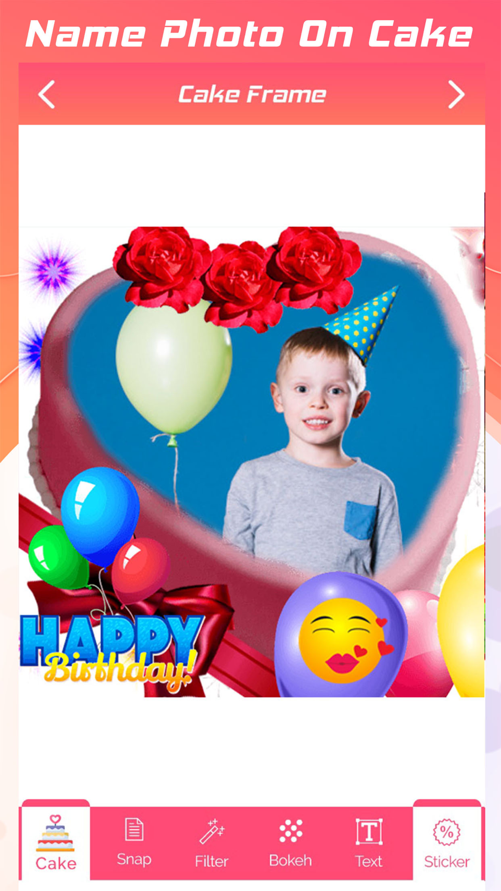 This Name Photo On Cake has Magic Effects, Frame and lot of options and features for decorate your photos.
