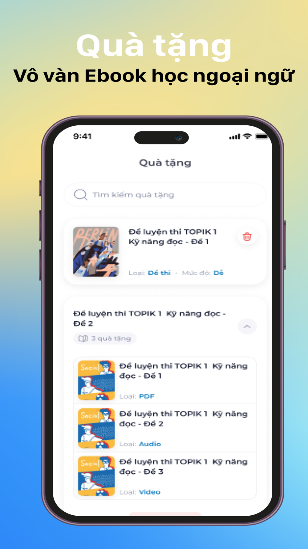 - Học cùng Ebook, audio luyện nghe, ảnh, video, ghi âm