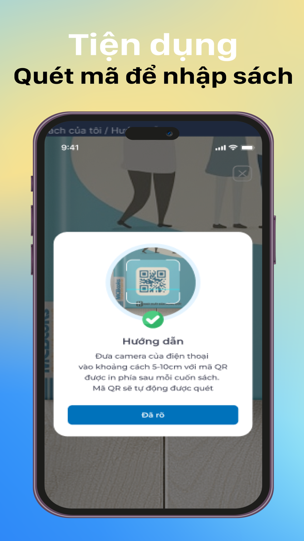 - Quét mã QR code hoặc nhập Barcode in trên bìa sau mỗi cuốn sách để vào bài học