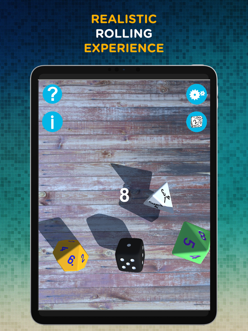 * Supports dice with 4, 6, 8, 10, 12 and 20 sides