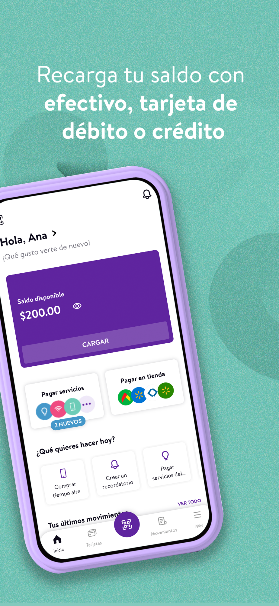 Solo descárgala, crea tu usuario e ingresa tu saldo en efectivo en cualquiera de nuestras tiendas (Walmart, Bodega Aurrera, Walmart Express y Sam's Club) o con tu tarjeta de crédito/débito y obtén beneficios exclusivos como bonificaciones o descuentos en productos seleccionados.