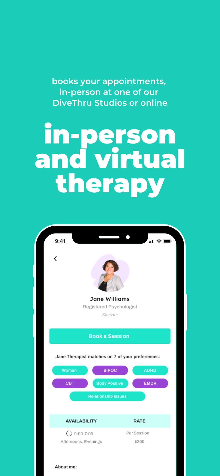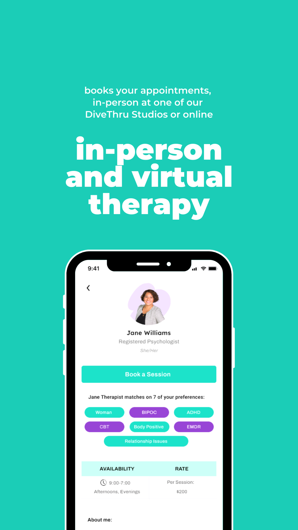 At DiveThru, you can find a therapist who reaallly gets you. With our thorough matching tool, we can connect you to a therapist that is the right fit for your needs. Whether virtually or in-person at our studio, you can access individual, child/youth, couples or family therapy.