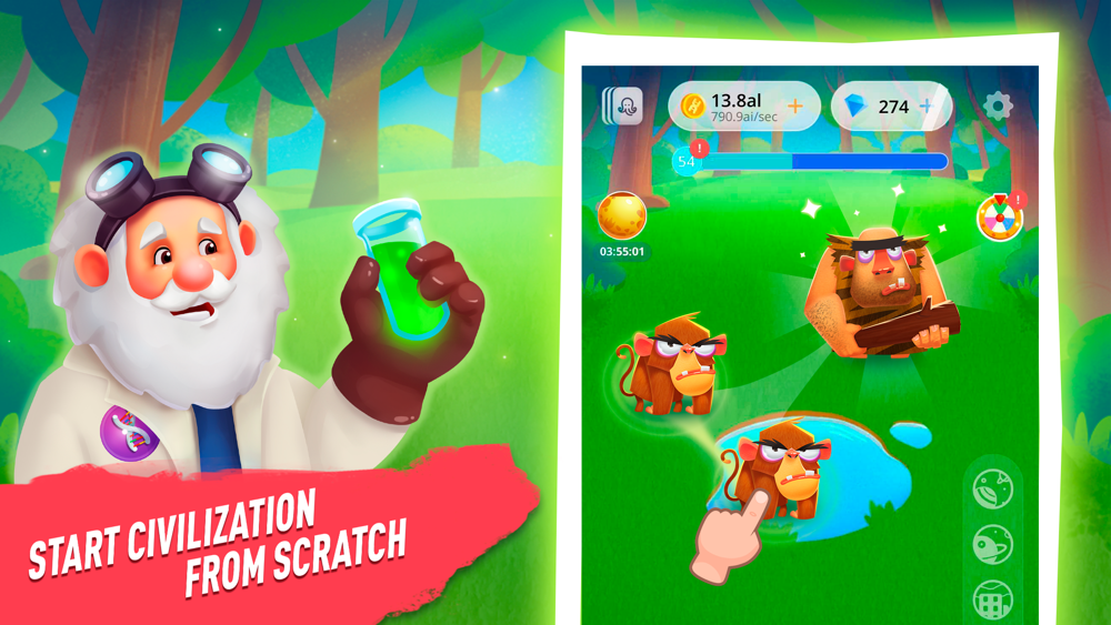 The world of evolution is waiting: start evolutionary fun right now. Tap to evolve from DNA or ameba to homo sapiens and cyborg! Enjoy this amazing idle clicker and evolution simulator.