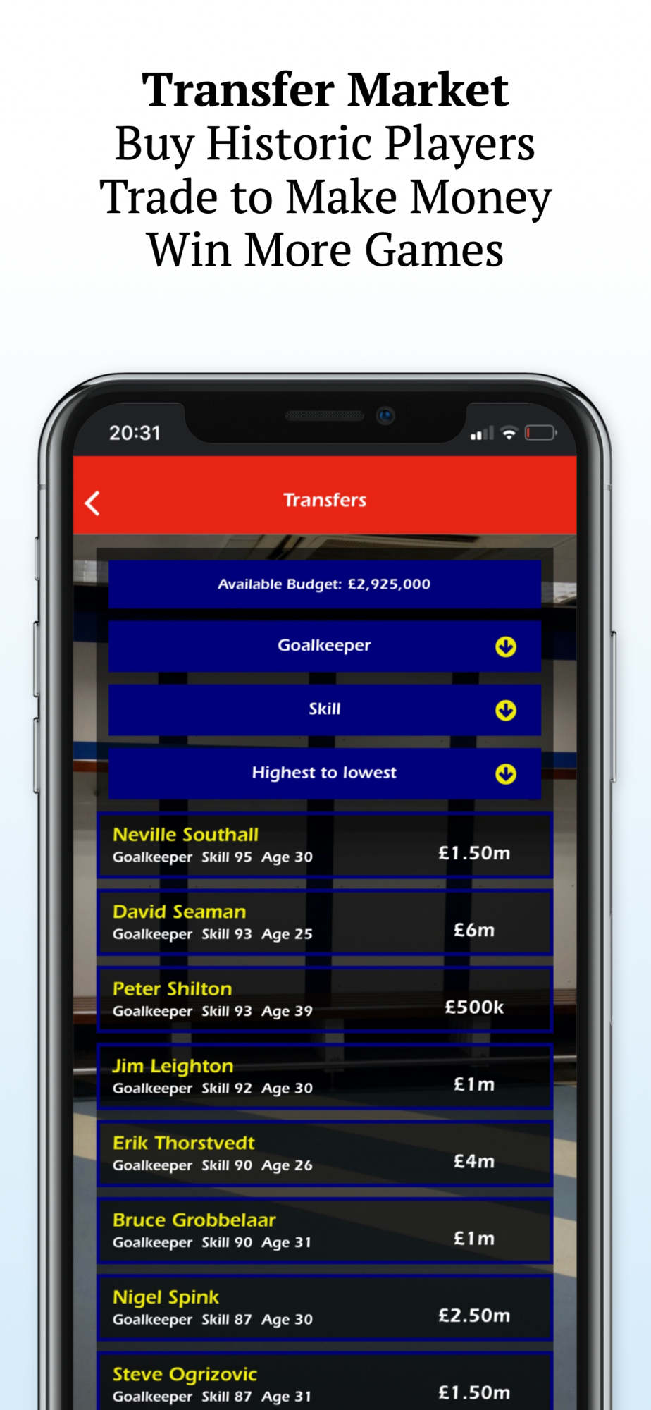 Pick the era when you fell in love with football and manage the legends of your youth. Turn an average Coventry team into European Champions, sell the players you never liked and buy the ones you did. Unlike other Management games, your clubs past mediocrity will not stop you signing the world’s best players - assuming you have the money of course!