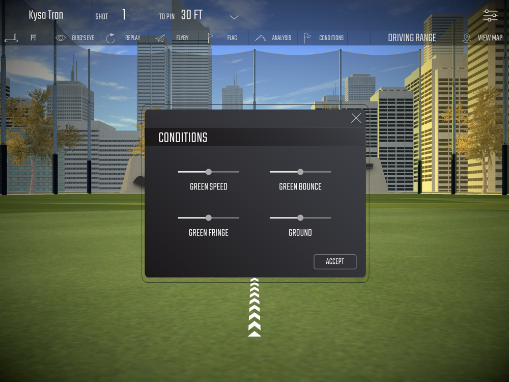 In the Driving Range, you have access to the same analytics that FSX 2018 grants in a full simulator environment. Complete ball flight and club head data (including impact location and club path) are available right at your fingertips.