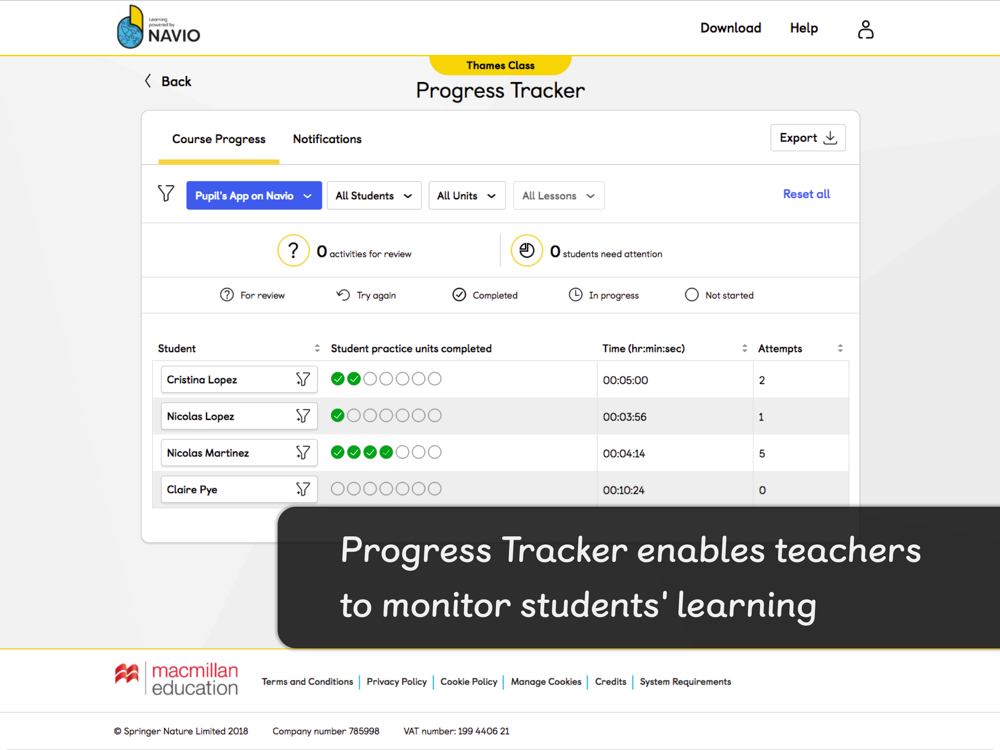 * Stay up-to-date with your students’ learning with the Progress Tracker