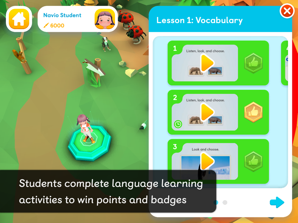 NAVIO provides teachers with a seamless transition between the coursebook and digital teaching activities. It makes learning more engaging for young learners who achieve rewards by completing game-based language activities.