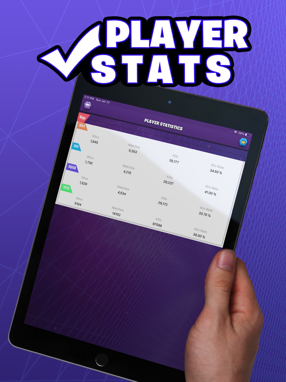 This app help you track and stay informed about the your latest Fortnite statistics. Stay up to date and track the achievements of your friends easily to improve your game!