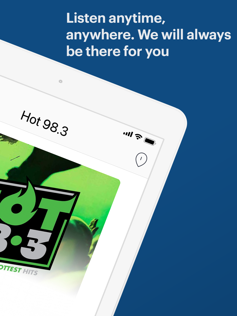 Never be without your favorite radio station. Hot 98.3 is proud to present our OFFICIAL FREE radio app.