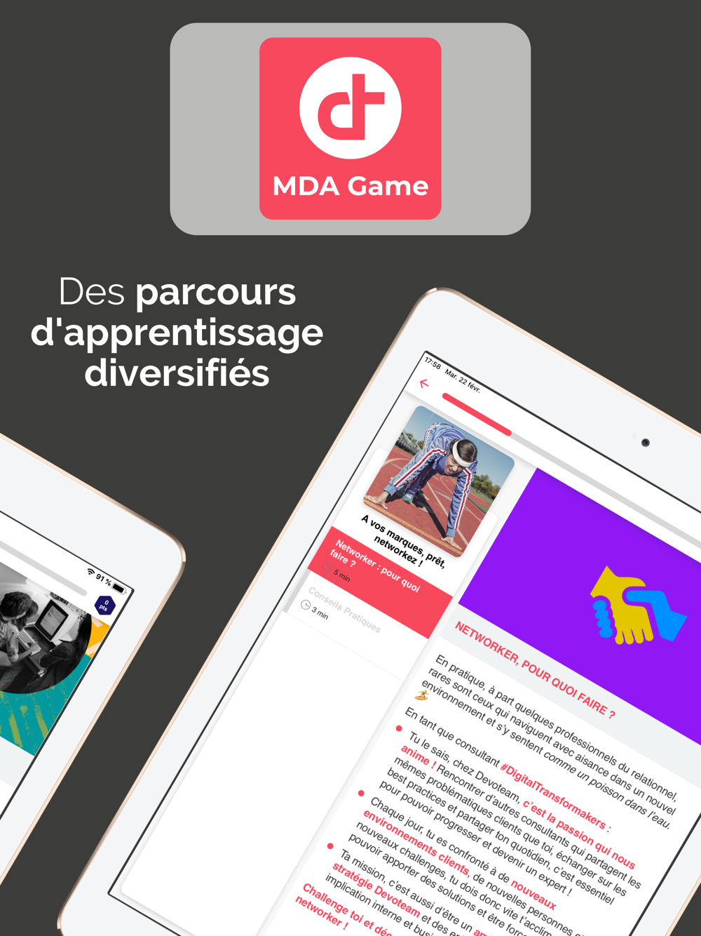 Welcome to the Mobile Learning application MDA Game, which provides innovative, mobile and intuitive micro learning training !